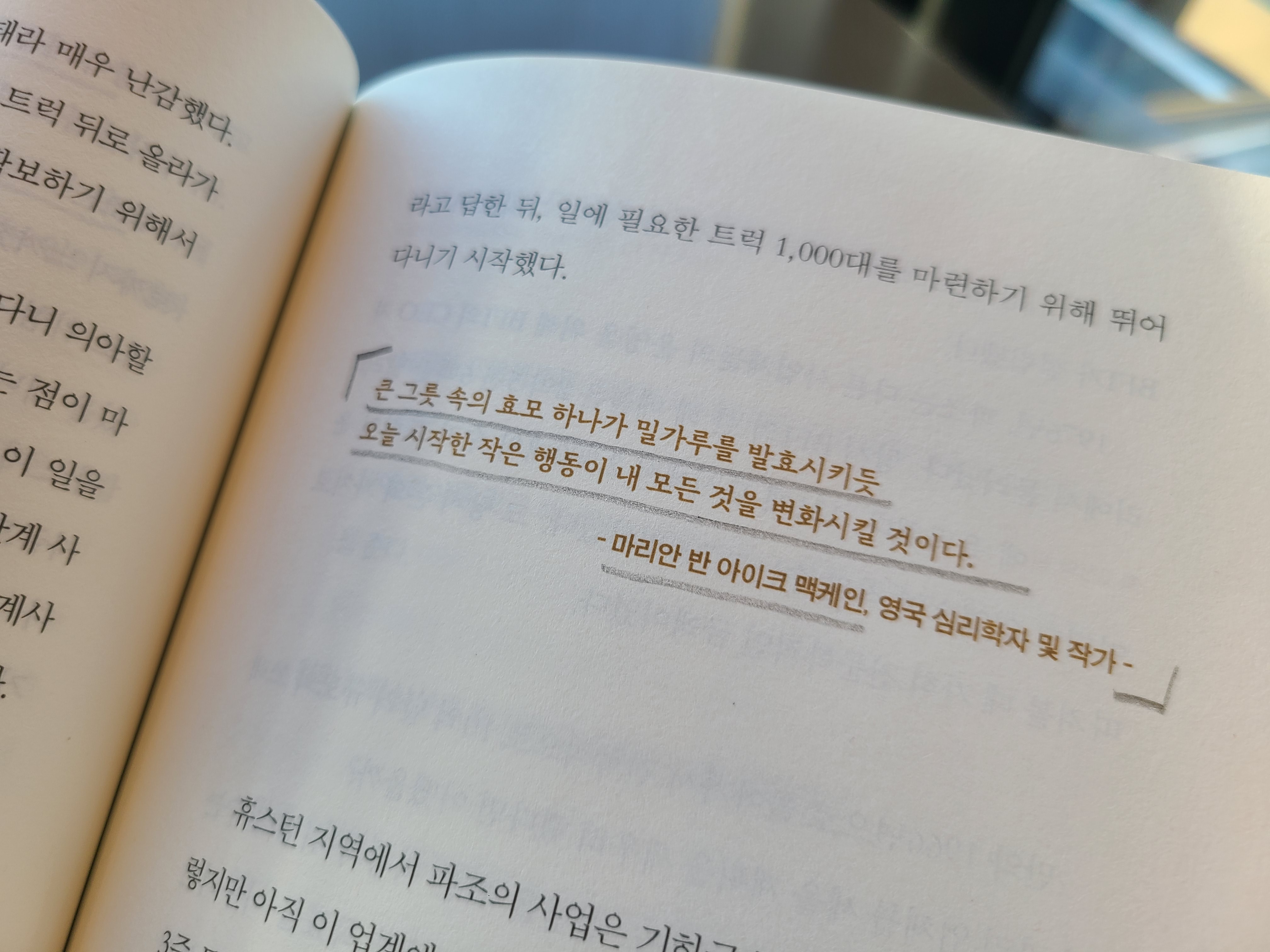 어떤 일을 하고 싶게 만드는 가장 좋은 방법으로 '그것을 하는 것'이라 전합니다. 직접 뛰어드는 것이 긍정적 태도를 불러오는 가장 빠른 방법이라고 말이에요.