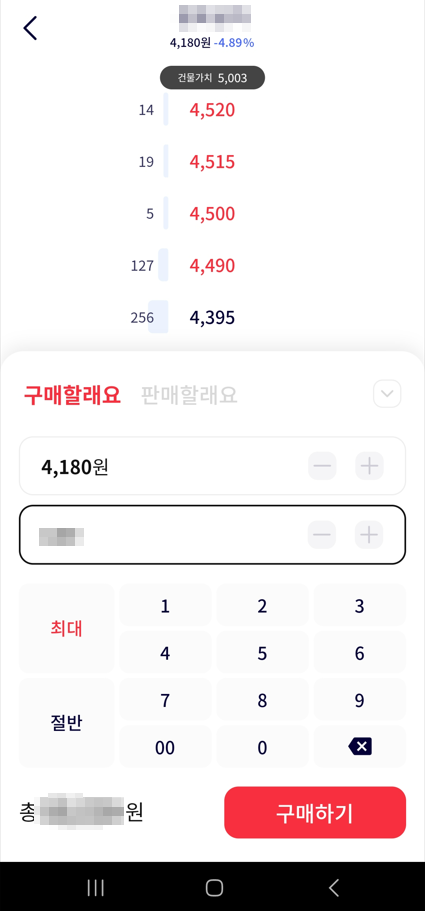 거래 기준가를 가운데 두고 상한가와 하한가를 확인하여 내가 거래하고 싶은 금액으로 원하는 수량을 구매하시면 됩니다. 그렇게 부동산 건물의 지분이 나에게 생깁니다.
