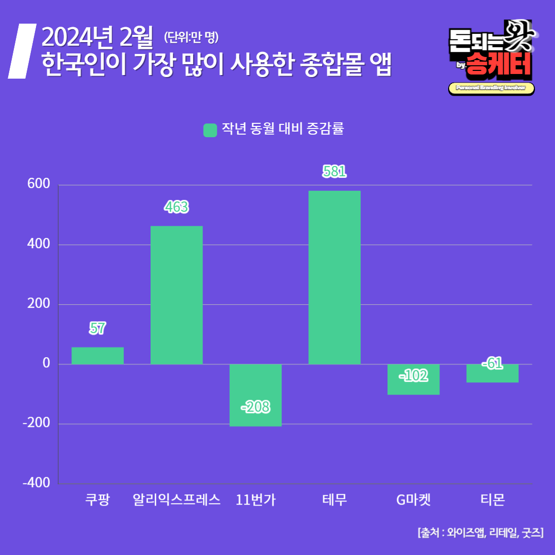 알리는 알리익스프레스의 줄임말로 사용되었습니다. 알리와 테무는 국민생활과 밀접한 관련이 있는 쇼핑몰로 작년 동월 대비 무서운 성장세를 보여주고 있습니다.