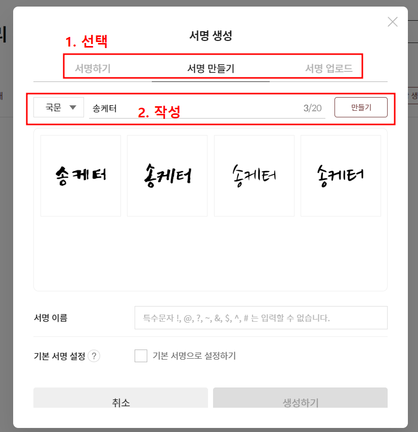 전자서명 만들기 : 도장 또는 싸인