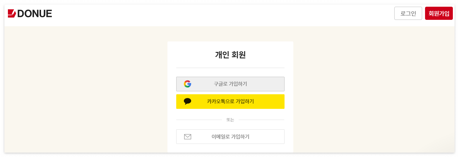 2) 회원가입(기업/개인 선택) 진행해 주세요. 주 로그인 사용정보가 있다면, 바로 선택하시면 빠릅니다. / 로그인까지 완료