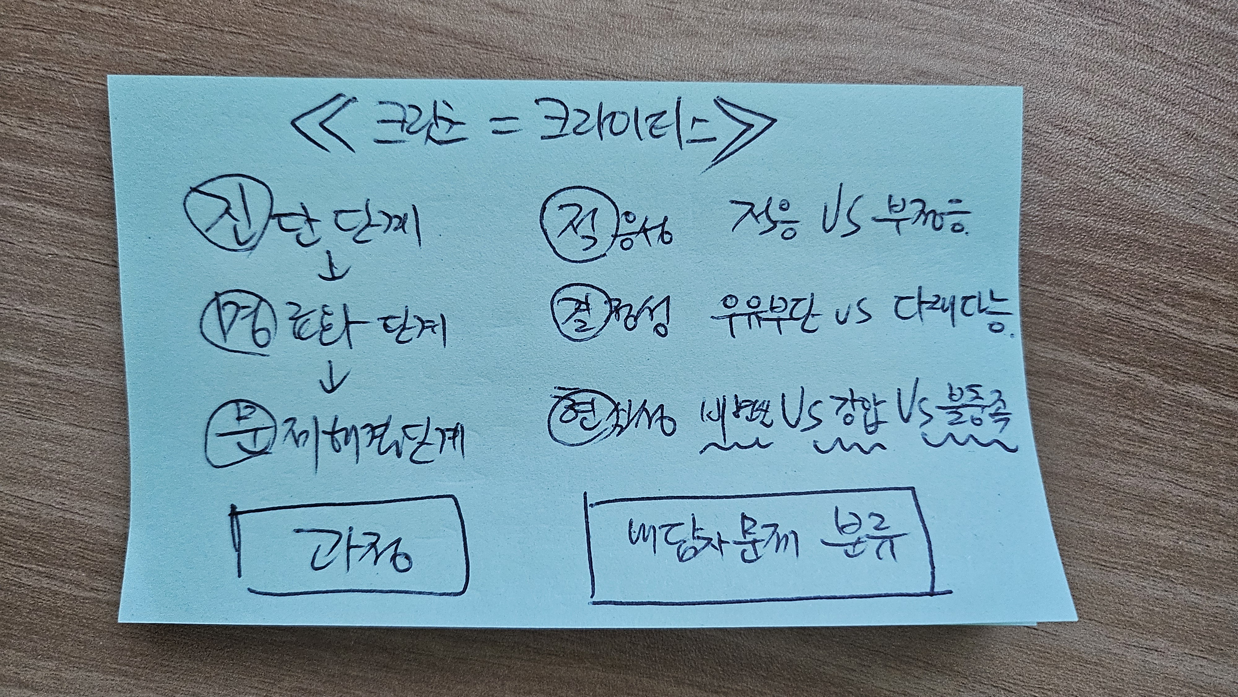 ▶ 암기팁 : 크라이티스는 적결현에서 내담자문제유형 공부했네 / 크라이티스-진명문 적결현